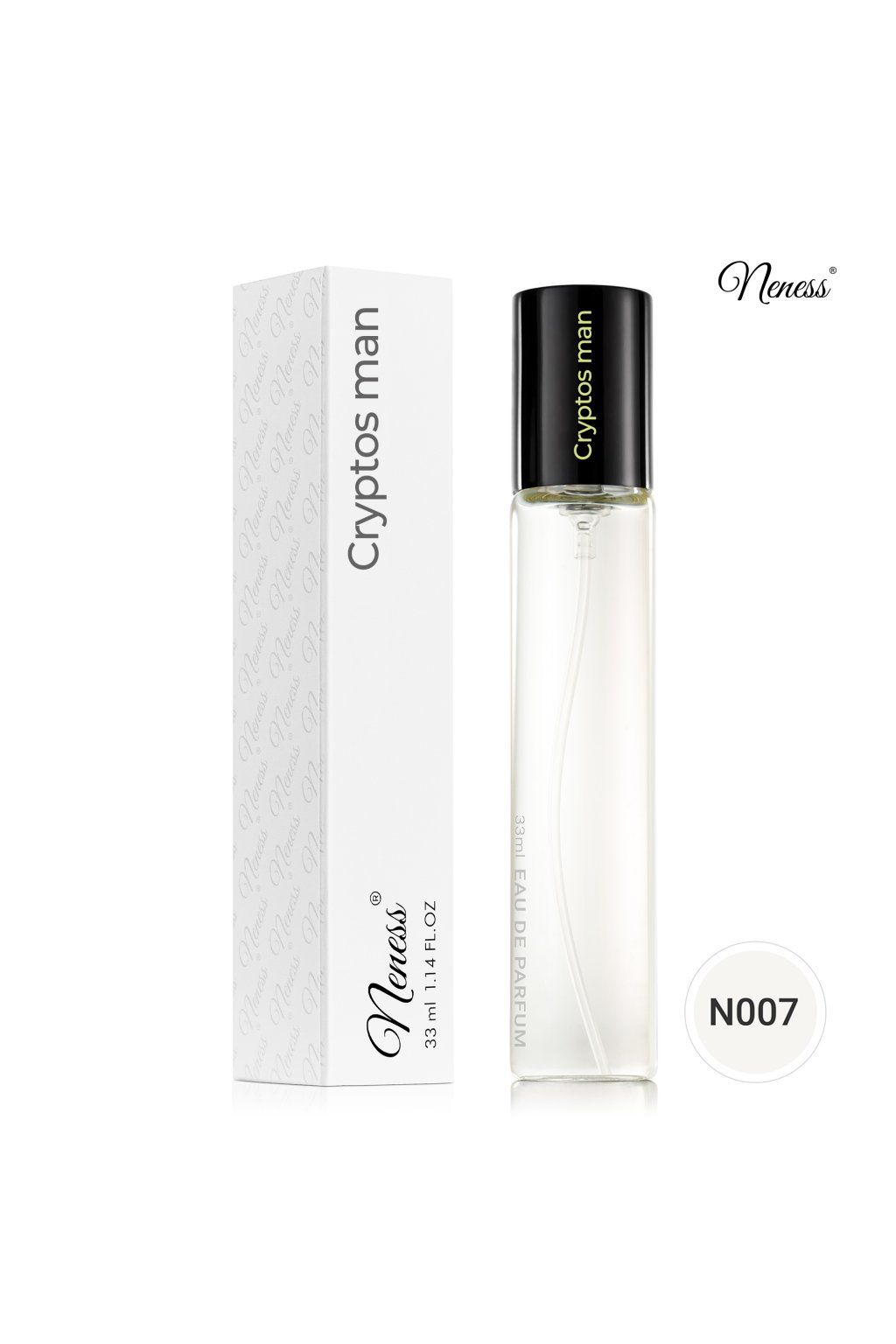 Orientális-fűszeres illat, klasszikus 33 ml-es üvegben. A Neness Cryptos Man egy férfi parfümvíz, amely egyedi és vonzó illatot kínál. A fejillatban intenzív cédrus és édes tonkabab jegyek keverednek, amelyek mély és érzéki kezdést adnak. A szívillatban aromás levendula dominál, finom és nyugtató jegyet kölcsönözve a parfümnek. Az alapillatban a zöld mandarin frissességet és energiát ad az illathoz. A Neness Cryptos Man tökéletes választás azoknak a férfiaknak, akik elegáns és dinamikus illatot keresnek.