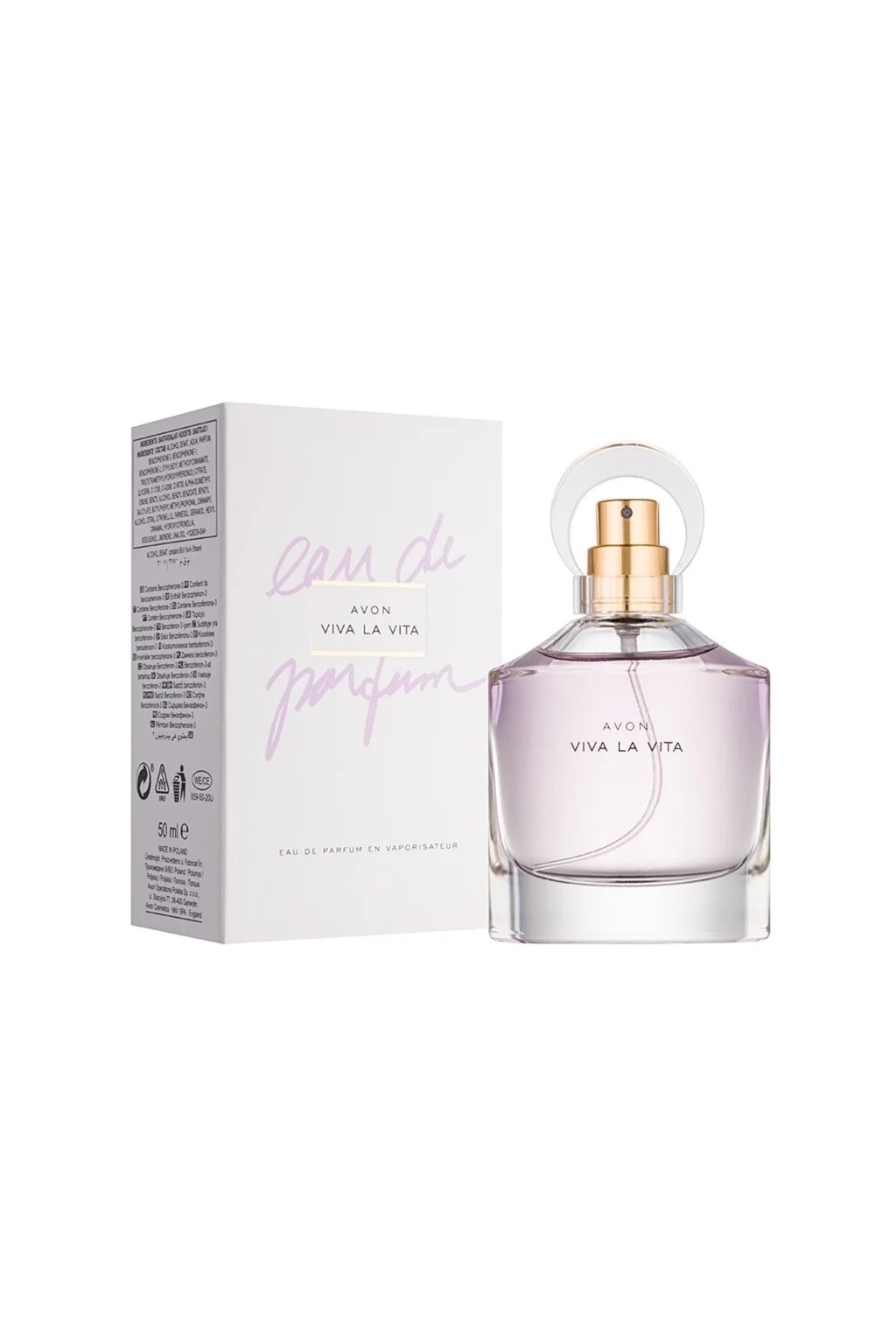 Gyümölcsös-virágos illat 50 ml-es flakonba zárva. A Viva La Vita illatosított víz egyedülálló összetétele nagyszerű választás azoknak a nőknek, akik csak élvezni akarják élet korlátok nélkül.  ;Az Avon Viva La Vita női illat a mandarin frissességével nyit, a magnólia és a meleg kasmír árnyalatával. A parfümös víz szívében mimóza virágzik, magnólia és rózsaszirom kíséretében. Egy igazán ellenállhatatlan kombináció a szantálfa és a kasmír egy csipetnyi vaníliával.