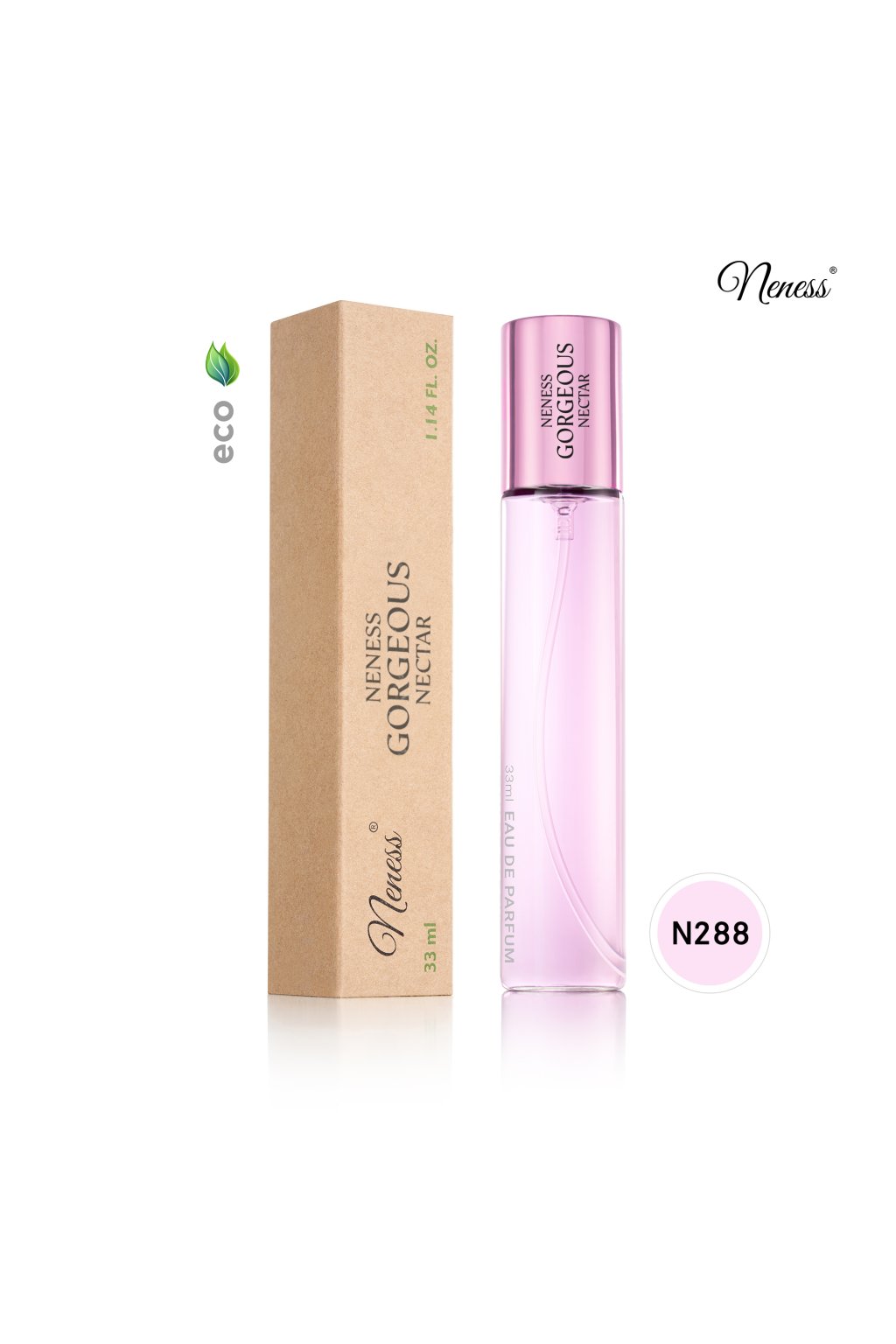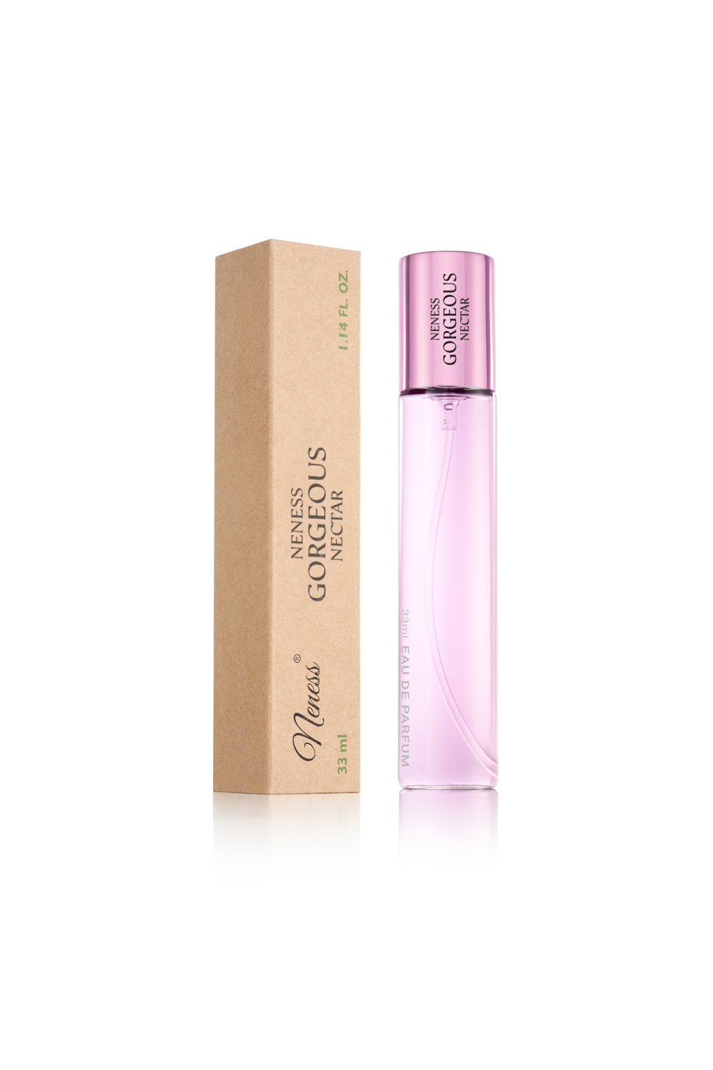 A Neness Gorgeous Nectar egy női parfümviz, amely friss és ínycsiklandó illatot kínál. Az illat fejében a körtevirág, mandarin és piros bogyók keverednek, ami lédús és energizáló nyitányt teremt. Az illat szívében a gardénia, jázmin abszolút és pluméria virágos tónusai bontakoznak ki, elegáns és csábító karaktert kölcsönözve a parfümnek. Az alapillat mély, édes pacsuli és barna cukor tónusokból áll, amelyek hosszan tartó és kellemesen meleg érzetet biztosítanak. A Neness Gorgeous Nectar tökéletes választás azoknak a nőknek, akik kifinomult és felejthetetlen illatra vágynak.