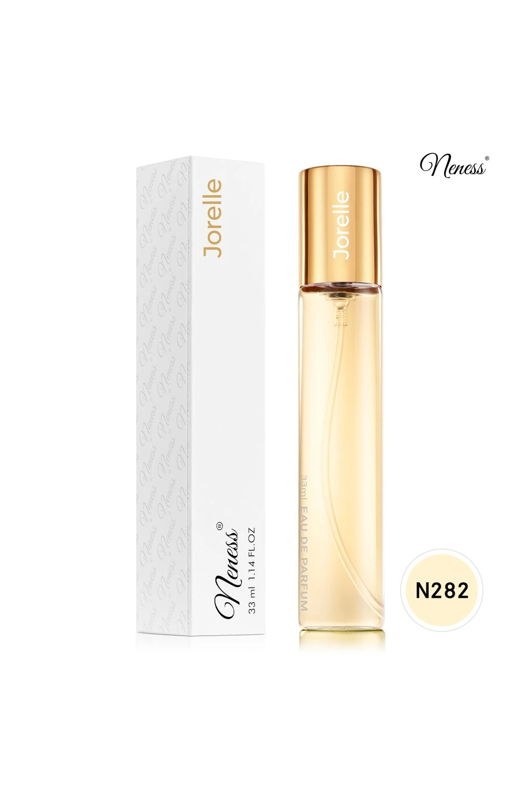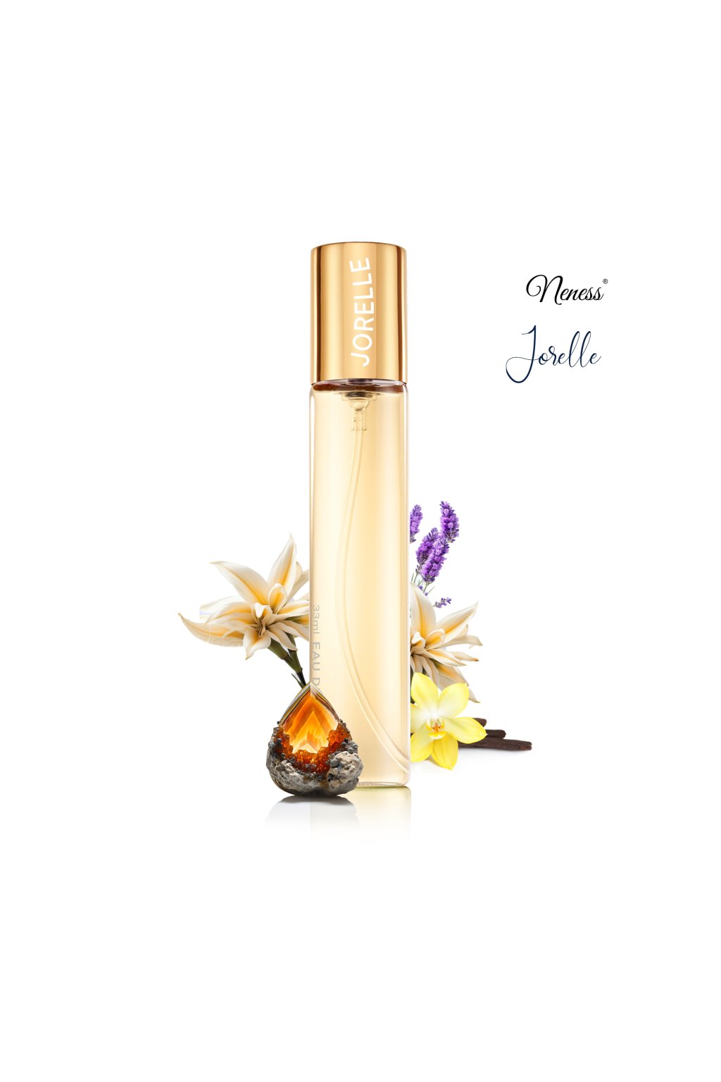 A Neness Jorelle egy női parfümvíz, amely elbűvöl csodás, vaníliás kompozíciójával. A fejillatban a finom levendula és a krémes vanília találkozik, kellemes és nyugtató kezdést teremtve. A szívillat egyedi vaníliás kaviárból áll, amely ellenállhatatlan édességet és luxus karaktert ad a parfümnek. Az alapillatban az abszolút vanília bontakozik ki, amely mély és érzéki lezárást biztosít, hosszú ideig megmaradva a bőrön. A Neness Jorelle tökéletes választás azoknak a nőknek, akik szeretik az édes, vaníliás illatokat, eleganciával és kifinomultsággal fűszerezve.